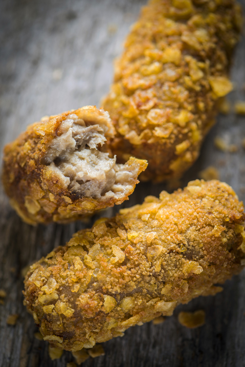 ONZE LAATSTE NIEUWE COMBINATIE START MET EEN TRAAG GEGAARDE HOEVEKIP. HIER GEBRUIKEN WE DE DIJEN EN FILET VOOR EEN MOOIE AFWISSELING IN SMAAK EN TEXTUUR. DE KIPPENBOUILLON WORDT AFGEWERKT MET EEN HINT VAN DASHI, VOOR EEN MOOIE UMAMI SMAAK! UITEINDELIJK WORDEN DE BLEND CROQUETTES GEROLD IN CORNFLAKES, VOOR EEN BETERE SMAAK EN CRUNCHY TEXTUUR